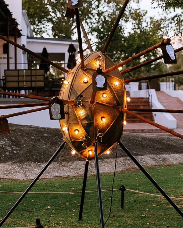This year these precarities have not simply disappeared - what with Eskom and loadshedding providing brutal irony to curating a project about light and adding to the challenges of what it takes to live in this contemporary world. However in this 2023 collection artists do play with and lean into form more deeply, on the materiality of light itself and its manifestations, shifting this sprawling outdoor exhibition into an experiential adventure of the many possibilities that light may be moulded into, from place holder, and a marker to a thing of wonder in and of itself. So while themes do abound and hold the gravitas and centre of this collection of work, light is deployed in a myriad of evocative ways, an invitation to experience a range of forms and in some instances leading us to reflect on some of the pressing issues of our time.
