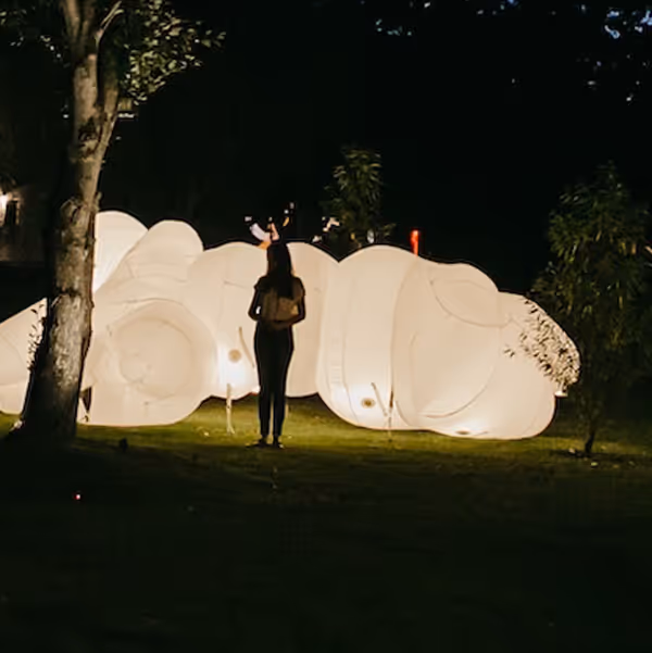 This year these precarities have not simply disappeared - what with Eskom and loadshedding providing brutal irony to curating a project about light and adding to the challenges of what it takes to live in this contemporary world. However in this 2023 collection artists do play with and lean into form more deeply, on the materiality of light itself and its manifestations, shifting this sprawling outdoor exhibition into an experiential adventure of the many possibilities that light may be moulded into, from place holder, and a marker to a thing of wonder in and of itself. So while themes do abound and hold the gravitas and centre of this collection of work, light is deployed in a myriad of evocative ways, an invitation to experience a range of forms and in some instances leading us to reflect on some of the pressing issues of our time.