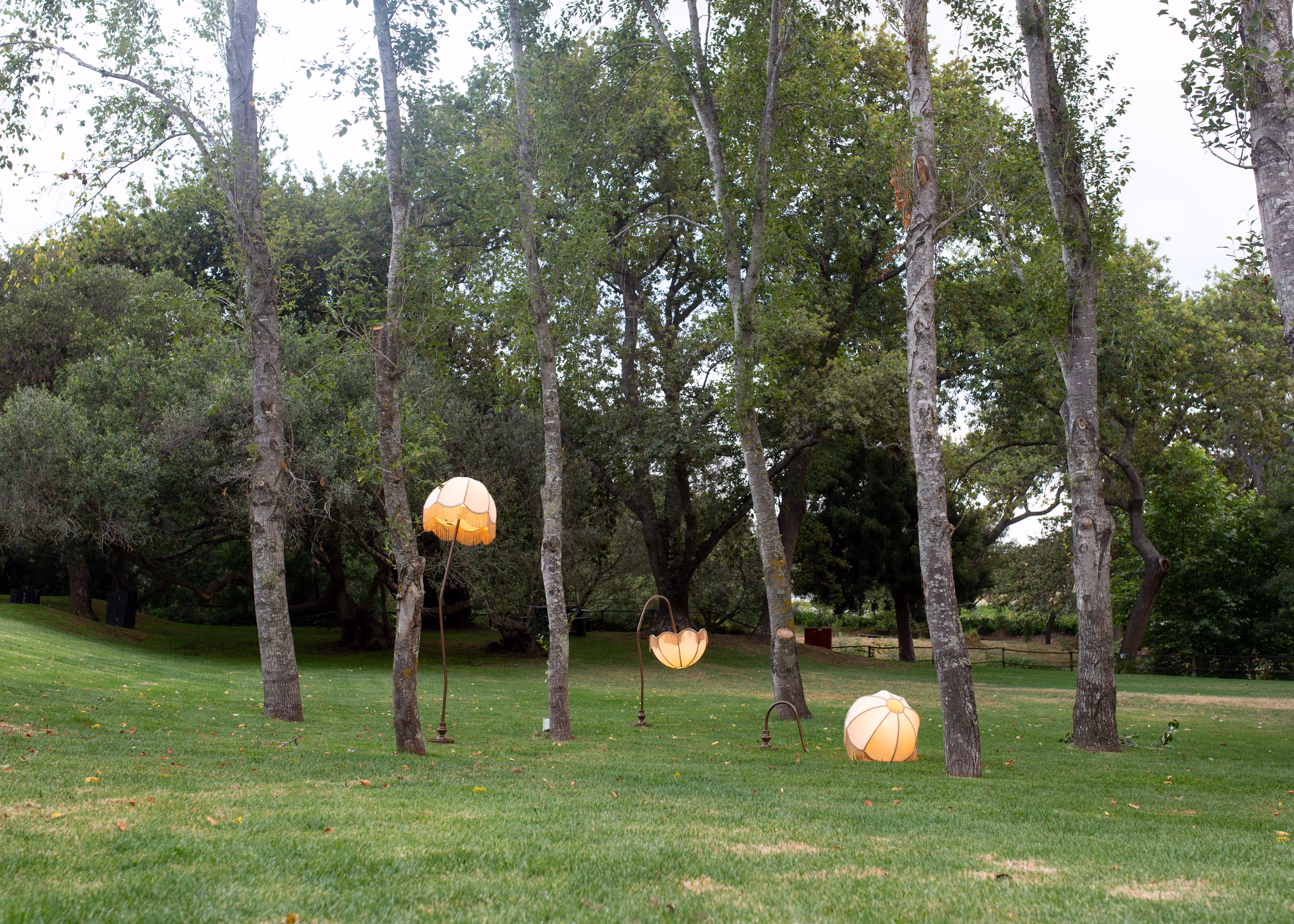 This work aims to express the fragility of familiarity. The old-fashioned floor-standing lamps refer to the environment of a traditional household – one with Calvinistic values where the feeling of a distorted reality is often present. The façade of this reality is seemingly hidden in plain sight.