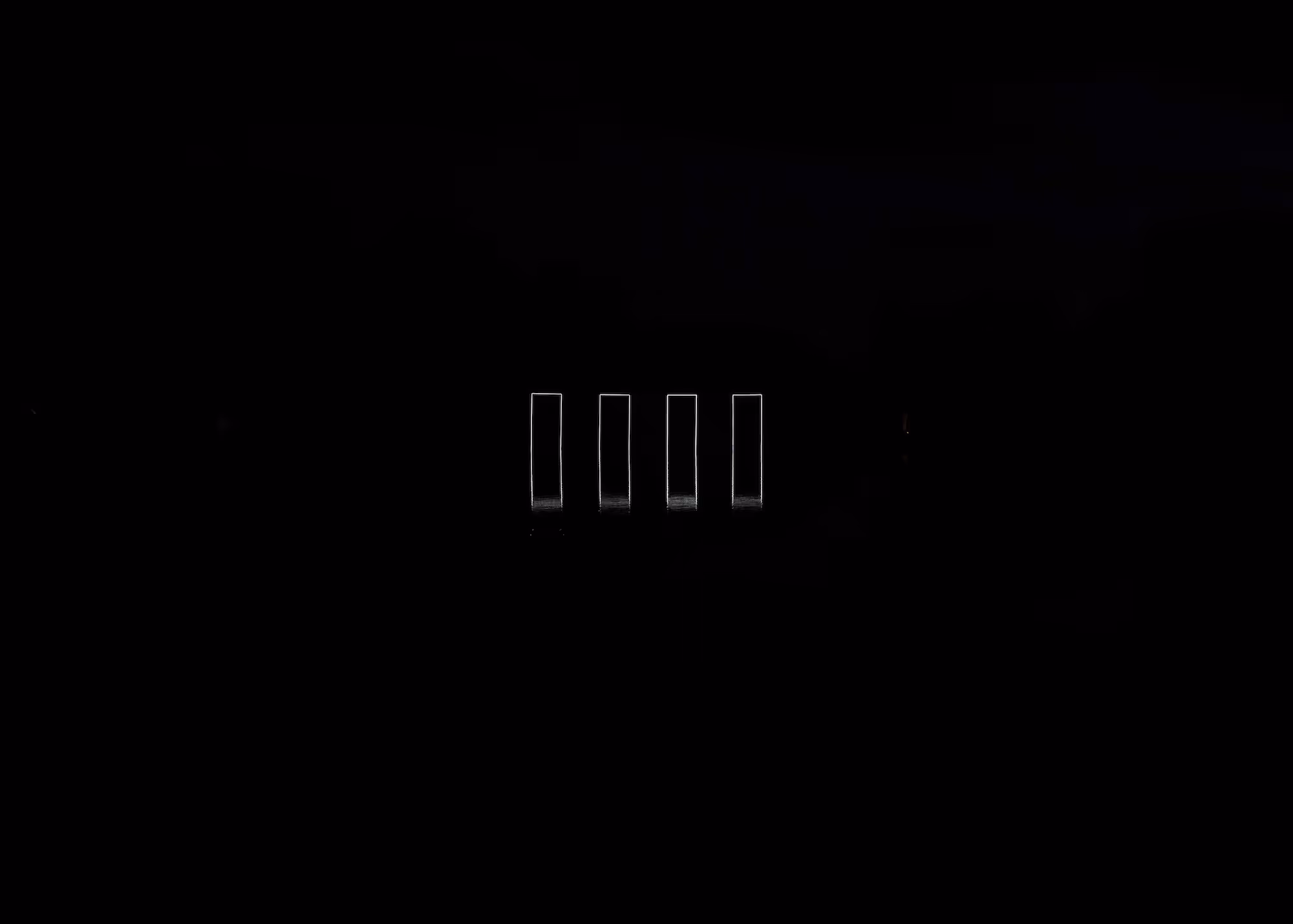 Transparent Geometries uses the simplest means of light and reflection to create subtly complex perceptual effects. The work is intended to provoke an internal dialogue between mind and body: “Why can’t I walk through that empty space? What stops me?”