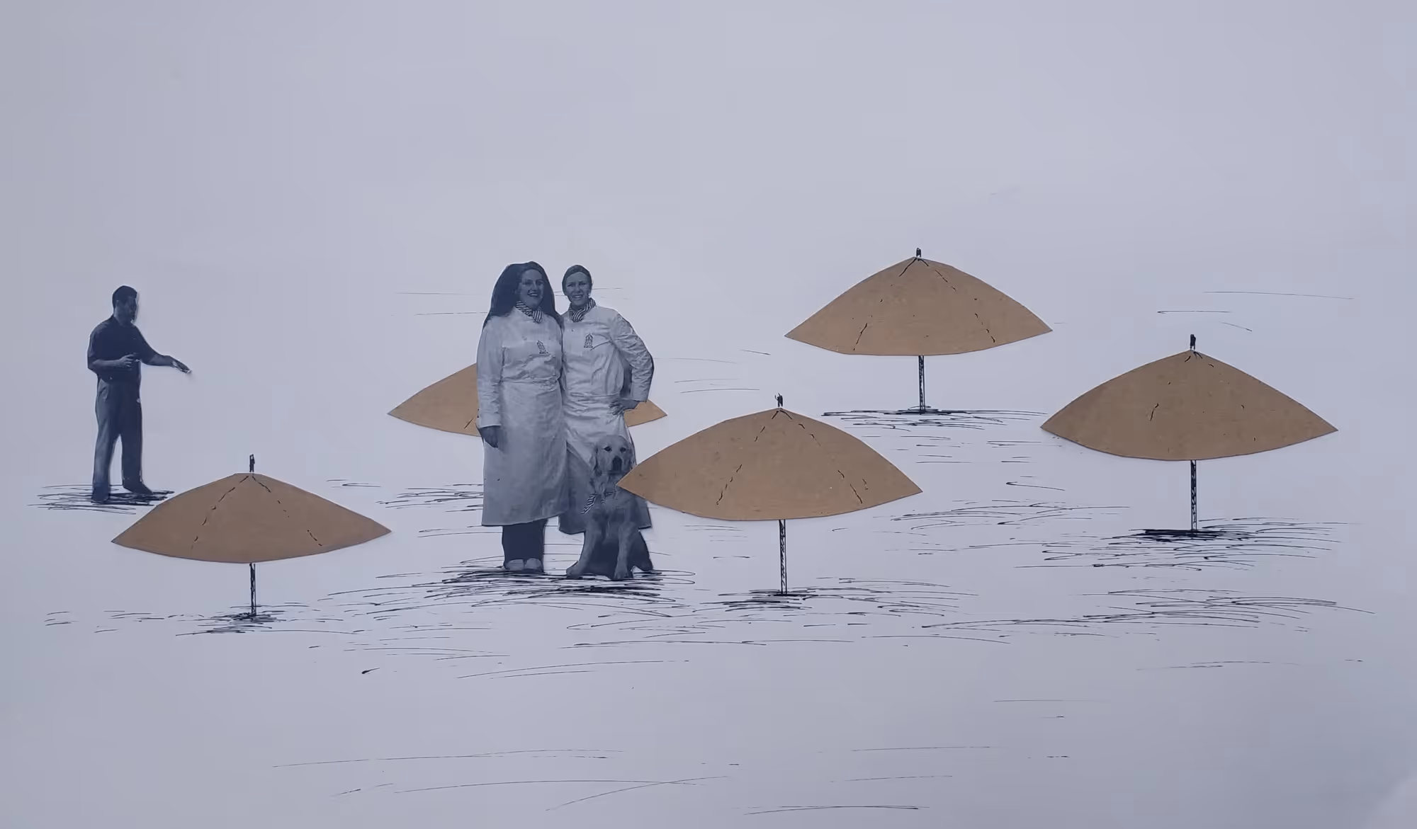 As viewers walk among the umbrellas, they are invited into a shared space of reflection and solidarity. This immersive experience transforms the act of shelter into a collective gesture of hope, urging awareness of the urgent need for climate justice, community care, and reimagined urban systems that protect rather than endanger.